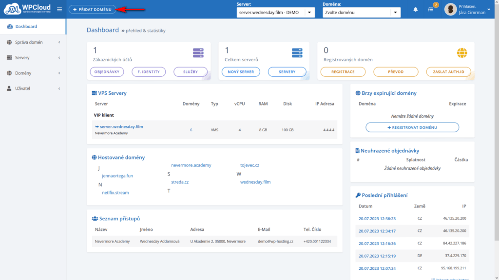 1) Zadejte celý název domény druhého řádu (domena.cz)